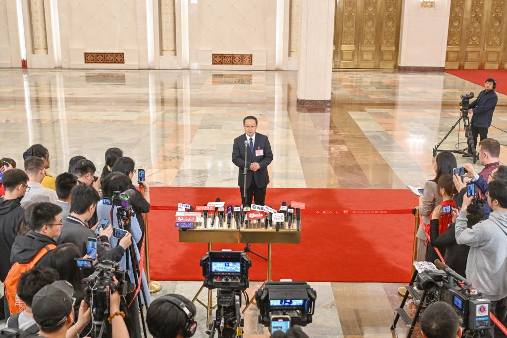 3月11日,第十四届全国人民代表大会第三次会议第三场“部长通道”集中采访活动在北京人民大会堂举行。这是文化和旅游部部长孙业礼接受媒体采访。