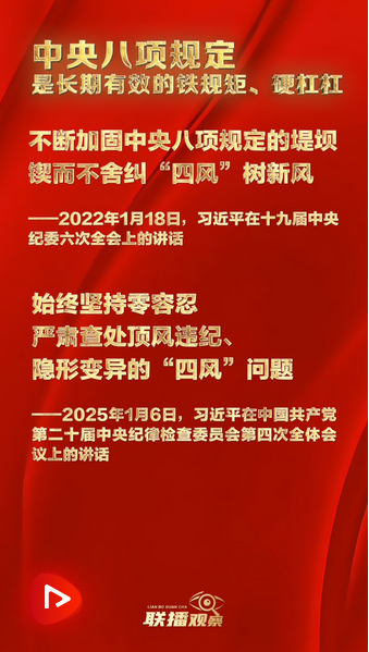 中央八项规定是我们党进入新时代加强作风建设的关键一招。深入贯彻落实中央八项规定精神,再次向全党全社会释放出“作风建设永远在路上”的强烈信号。我们要以此次学习教育为契机,把中央八项规定精神作为长期有效的铁规矩、硬杠杠,以作风建设新成效汇聚起推动改革发展的强大力量。