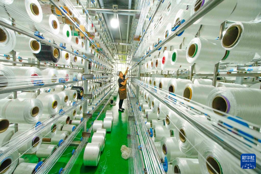 9月27日,河北省遵化市高强化纤有限公司的工人在车间工作。9月27日,国家统计局发布数据显示,1至8月,在宏观政策发力显效、全国统一大市场纵深推进,叠加去年同期低基数等多重因素作用下,全国规模以上工业企业实现利润总额46929.7亿元,同比增长0.9%。新华社发(刘满仓摄)
