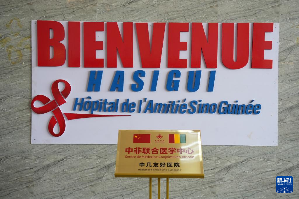 这是11月12日在几内亚首都科纳克里的中几友好医院拍摄的中非联合医学中心标志牌。首个中非联合医学中心协议签署暨揭牌仪式12日在几内亚首都科纳克里的中几友好医院举行。新华社记者张健摄