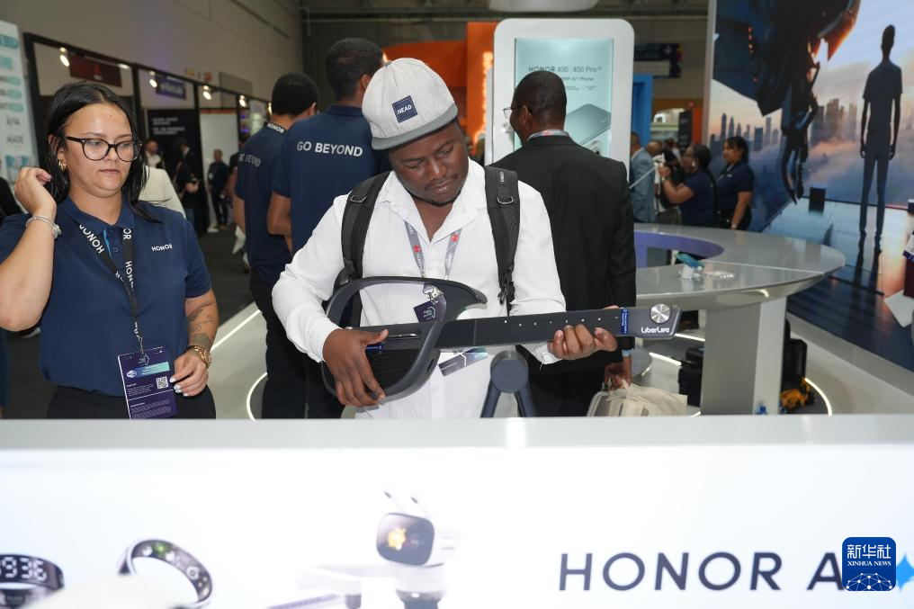 11月11日,在南非开普敦,一名参观者在2025年非洲科技节上体验智能电子吉他。2025年非洲科技节11日至13日在南非立法首都开普敦举行。参展中国企业表示看好非洲数字化转型潜力,也期待继续助力非洲数字化转型进程。新华社记者王雷摄