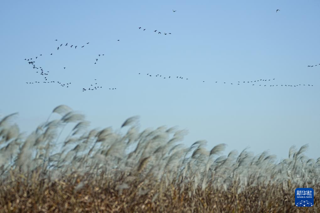 11月13日在黄河三角洲国家级自然保护区拍摄的候鸟。初冬时节,位于山东省东营市的黄河三角洲国家级自然保护区迎来大批越冬候鸟。每逢秋冬候鸟迁徙季,这里便成为鸟类天堂,万鸟翔集,场面蔚为壮观。据了解,每年有超过200种候鸟在此繁殖、越冬和迁徙停歇。新华社记者朱峥摄