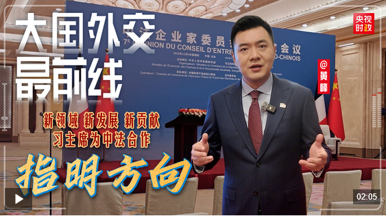 当前,世界百年变局加速演进,人类又一次站在何去何从的十字路口。中法关系如何进一步发展?习近平主席在致辞中提出三个“新”,为中法合作指明方向。一起来看“大国外交最前线”在前方带来的观察。