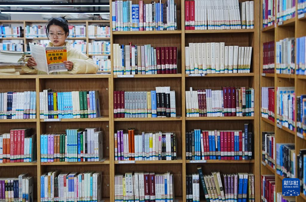 12月18日,湖南省衡阳市南华大学2026年度考研的同学在学校图书馆内看书复习。2026年全国硕士研究生招生考试将于12月20日至21日举行,考研学子们加紧复习,积极备考。新华社发(曹正平摄)