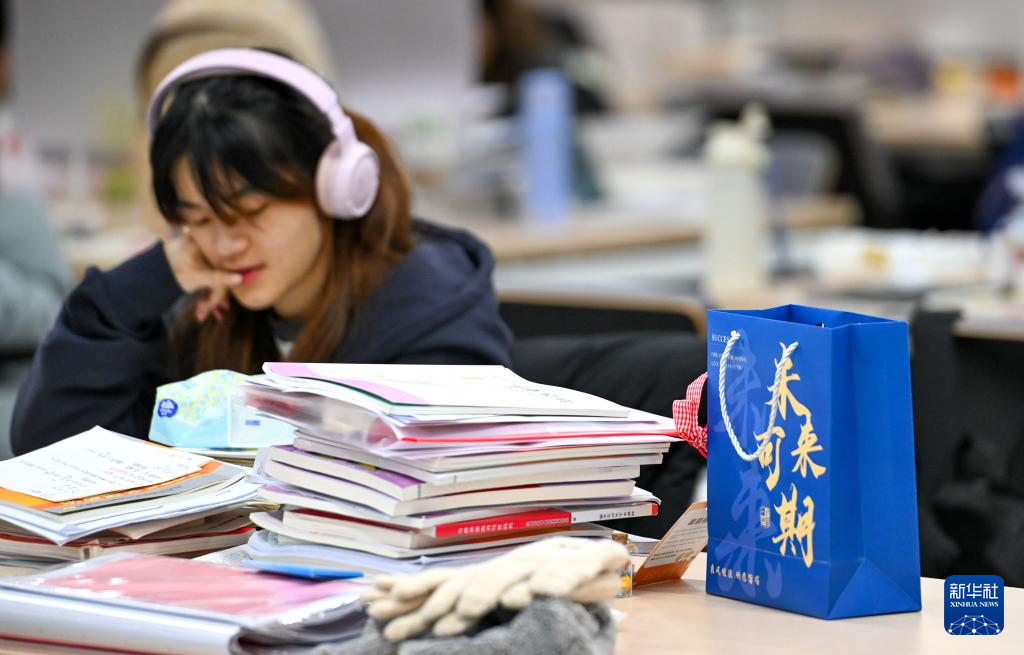 12月17日,学生在南京林业大学图书馆内复习备考。2026年全国硕士研究生招生考试将于12月20日至21日举行,考研学子们加紧复习,积极备考。新华社发(杨素平摄)