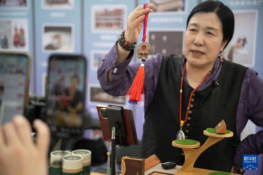 12月20日,一名手工艺人直播展示香薰工艺品。12月20日,“匠心传承美美与共”中俄蒙三国传统手工艺文化交流活动在内蒙古自治区满洲里市举行。来自中俄蒙三国的传统手工艺者齐聚一堂,交流传统特色手工艺,吸引众多游客、市民前来参观。新华社记者连振摄