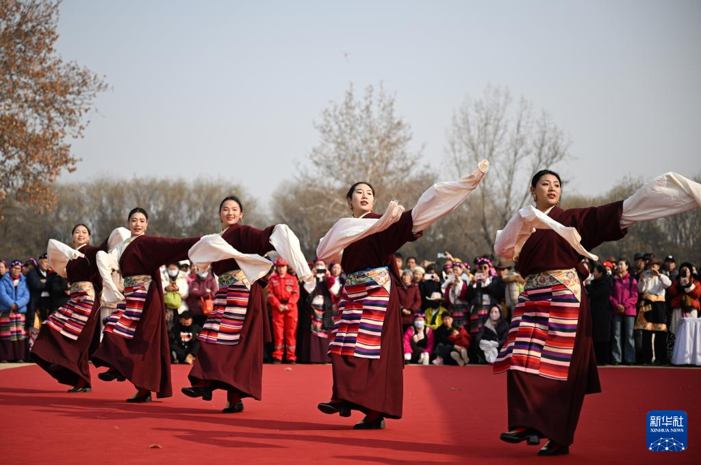 1月17日,来自西藏自治区昌都市基层文艺团体的演员在西安大明宫国家遗址公园表演舞蹈。1月17日,一场藏族非遗展演在西安大明宫国家遗址公园举行,来自西藏自治区昌都市基层文艺团体的演员用精彩的节目展示藏族文化魅力。新华社记者张博文摄