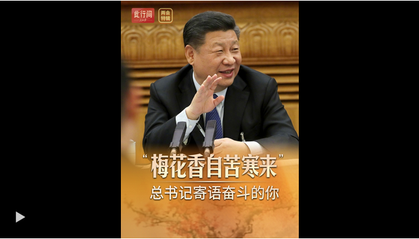 人民大会堂内有一幅巨型梅花图。它立于代表委员参加全国两会的必经路上,见证了他们履职尽责的历程。全国人大代表米雪梅行经此处,总会想起习近平总书记“梅花香自苦寒来”的寄语。这句话是对代表委员的殷切关怀,也是对实干人生的生动诠释。