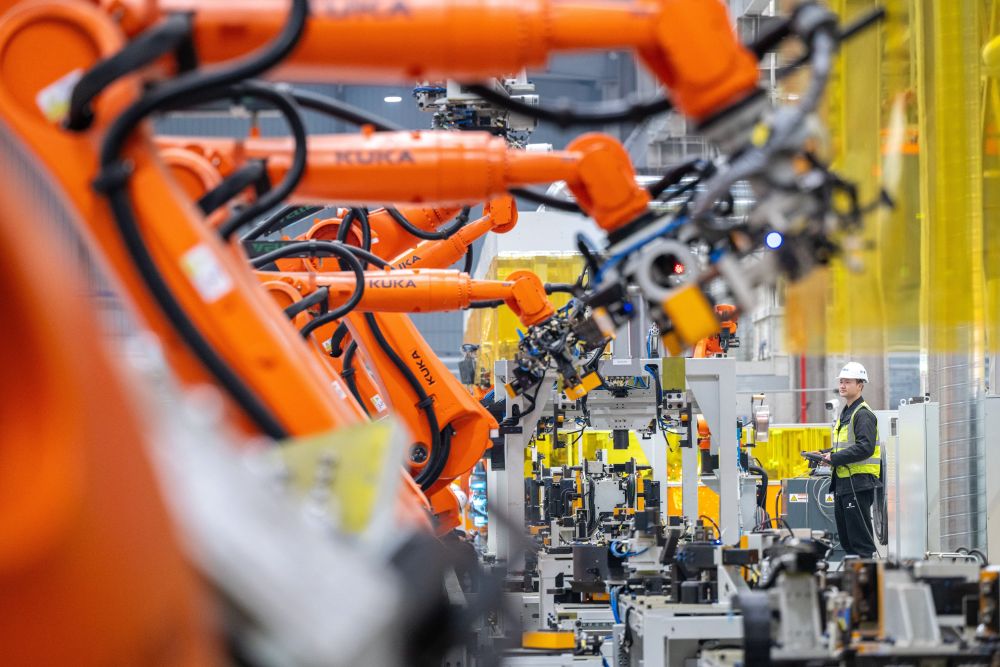 2026年3月16日,在浙江省湖州市长兴县吕山乡,诺力五期未来工厂的工人在智能化生产线上工作。新华社发(谭云俸摄)