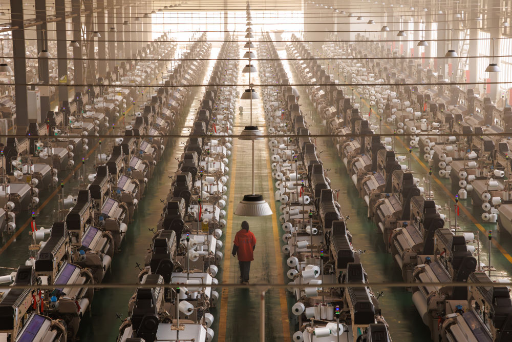 2026年4月17日,在贵州省毕节高新技术产业开发区一家纺织企业内,机器开足马力全力生产。新华社记者刘续摄